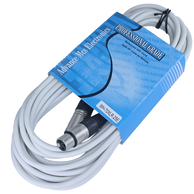 MALE TO FEMALE XLR CABLE 25FT WHITE