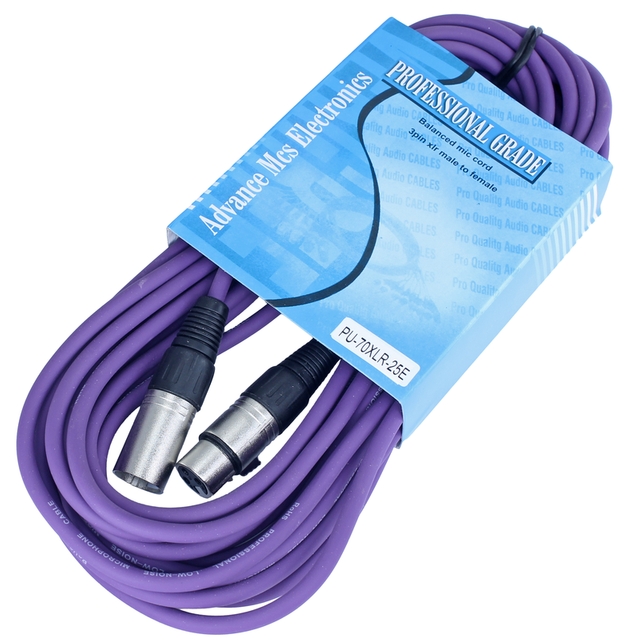 MALE TO FEMALE XLR CABLE 25FT PURPLE