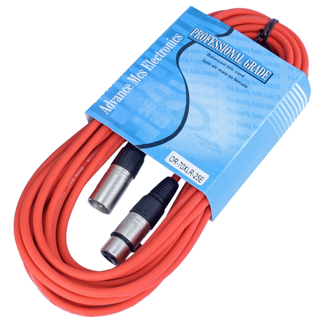 MALE TO FEMALE XLR CABLE 25FT ORANGE