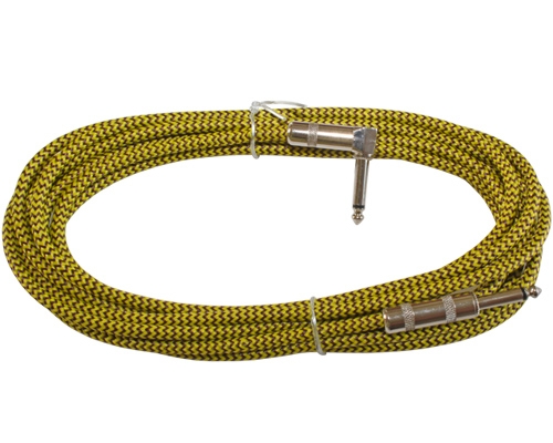 12FT WOVEN GUITAR CABLE METAL PLUGS RA-ST YELLOW